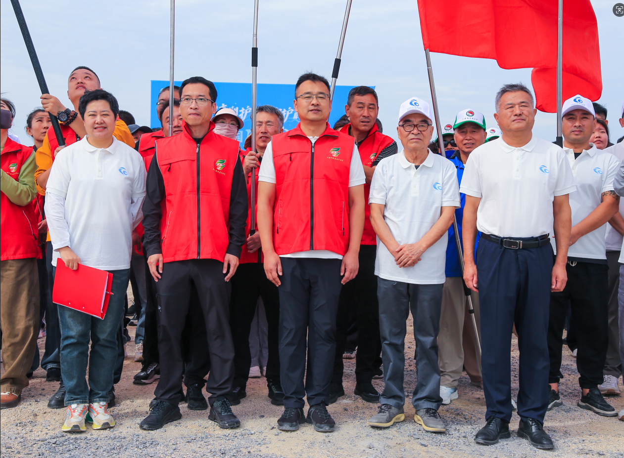 最令人振奋的时刻,当属启动宣布环节!随着盘锦市自然资源事务服务中心夏军营主任一声“第九届全国净滩公益活动(盘锦站)启动!”,全场共同高呼口号:“守护美丽海岸线,我们共同行动!” 三遍呐喊,响彻辽河口,凝聚起所有人的守护决心。合影定格下这一温暖瞬间,也开启了净滩行动的序幕。