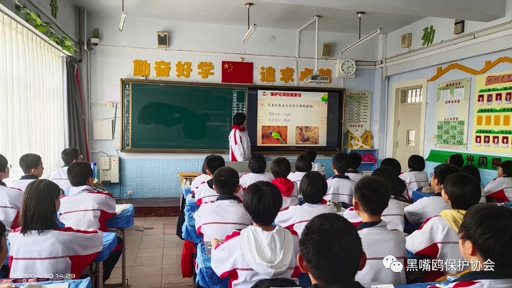 盘锦市第一完全中学在全校开展“聆听鸟鸣”活动,学生、家长积极参与到了解候鸟保护候鸟的行动中。世界候鸟日之际七年一班、七年二班、七年七班、七年十班学生分别开展了《像鸟儿一样歌唱、翱翔》主题班会,班会上学生通过演讲呼吁全社会一起行动保护候鸟。